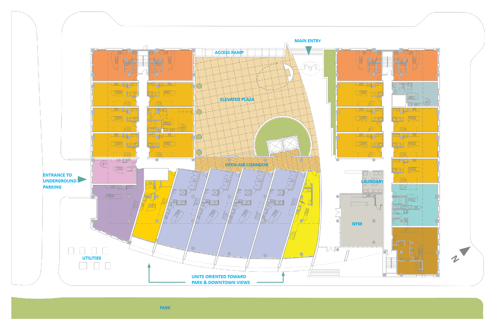 In a city widely known for its suburban expanse, this condominium complex is intentionally located adjacent to a green space near downtown Dallas. The side wings of the building – clad in brick – respond to adjacent buildings. In contrast, the curved, central portion of the complex is wrapped in glass and contains units oriented for downtown views. The building comprises of five double-height levels, a penthouse level, and two levels of underground parking. Parking space requirements determined the structural configuration throughout the entire building. The response to the program seeks to provide high-quality living spaces while affording the flexibility to the owner of any unit to determine the character of their particular living environment. LOCATION: Dallas, TX. SIZE: 271,155 g.s.f. COST: Private. COMPLETION: 2000. CLIENT: Post Properties. ARCHITECT OF RECORD: RTKL, Inc. Photo Credit: All Photos are by Others DESCRIPTION OF SERVICES: Full architectural design services (conceptual design to construction administration) including programming, design, coordination of various consultants, and construction administration. NOTE: Mayowa Alabi was a co-designer and project manager during construction on this project for RTKL - the Architect-of-Record for the project.