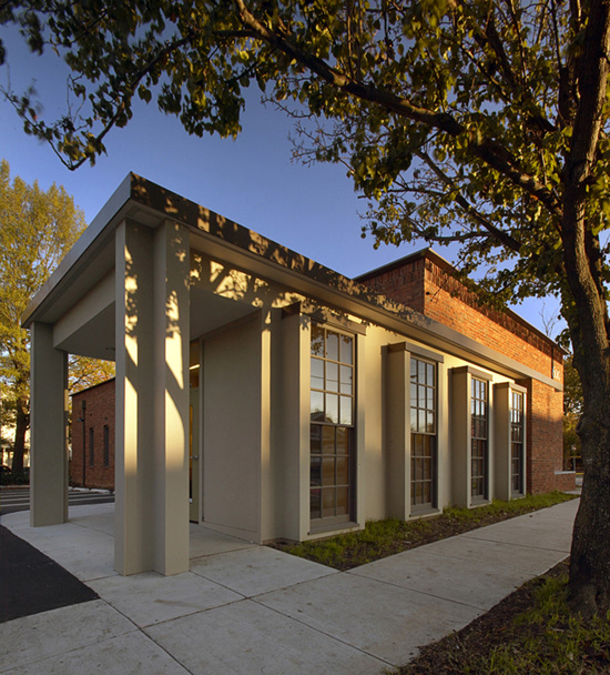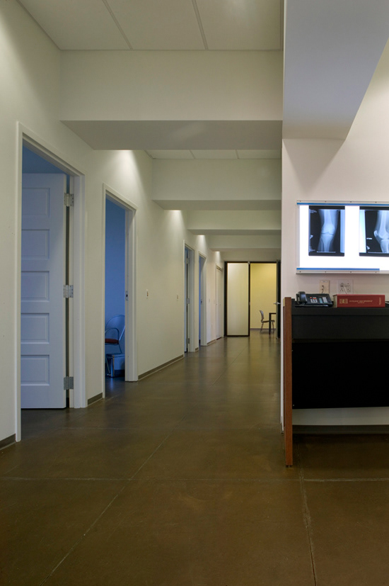 Located on a corner lot in downtown Raleigh, NC, the project siting accommodates parking while maintaining the material expression and zero- lot line planning pattern of the adjacent pedestrian business district. The simple materials selected for their visual and practical characteristics: tumbled brick, painted cement board, stained concrete floors, and oversized wood windows which are combined with plaster interiors to create carefully-proportioned light-filled spaces within. The building contains heavy duty services to support a digital x-ray installation and is structured to allow the future addition of a second floor. LOCATION: Raleigh, NC. SIZE: 2,770 s.f. COST: $475,600 (construction cost). CLIENT: Dr. Sarah E. DeWitt. ARCHITECT-OF-RECORD: A company purchased by Mayowa Alabi. DESCRIPTION OF SERVICES: Full architectural design services (conceptual design to construction administration) for a new medical clinic building, including new parking lot and related site improvements. Building was designed for the future addition of a single additional upper level. Services also included interior design.