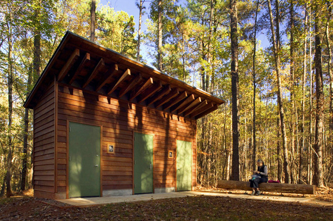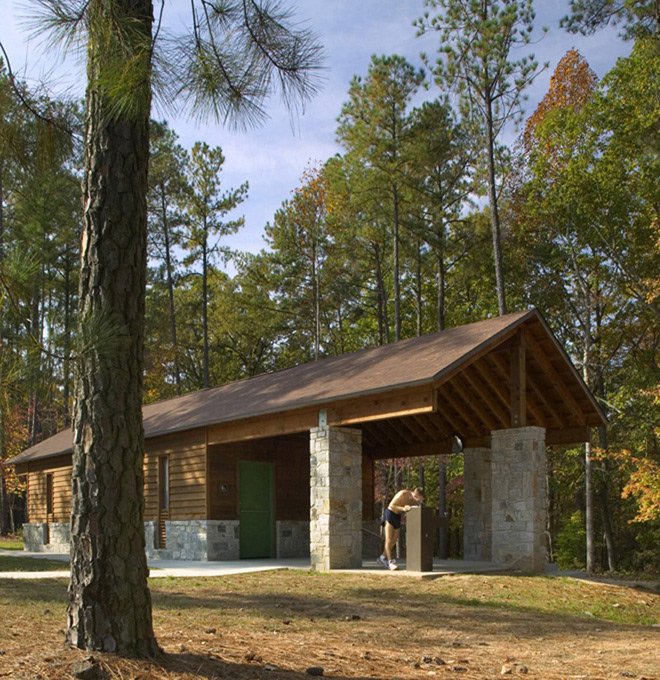 Six new camp and picnic area washhouse buildings and the complete renovation of four existing camp washhouse buildings were included in the scope of this project. Materials and forms consistent with the architecture of the existing 1930’s park buildings were utilized both for visual continuity and to achieve approval from the State Historical Preservation Office for construction within this Registered Historical Site. Existing park infrastructure was reused where possible, but the project also included new septic fields and significant expansion of water and electrical service. LOCATION: Raleigh, NC. SIZE: 4,222 s.f. COST: $1,003,260. COMPLETION: 2004. CLIENT: NCDENR - Division of Parks and Recreation. ARCHITECT-OF-RECORD: A company purchased by Mayowa Alabi. DESCRIPTION OF SERVICES: Full architectural design services (conceptual design to construction administration) on new washhouse and toilet buildings, renovation of existing toilet buildings, extension of utilities to new facilities, demolition of some existing facilities and addition of new septic field.